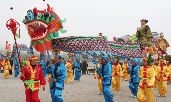 “龙灯扛阁”表演