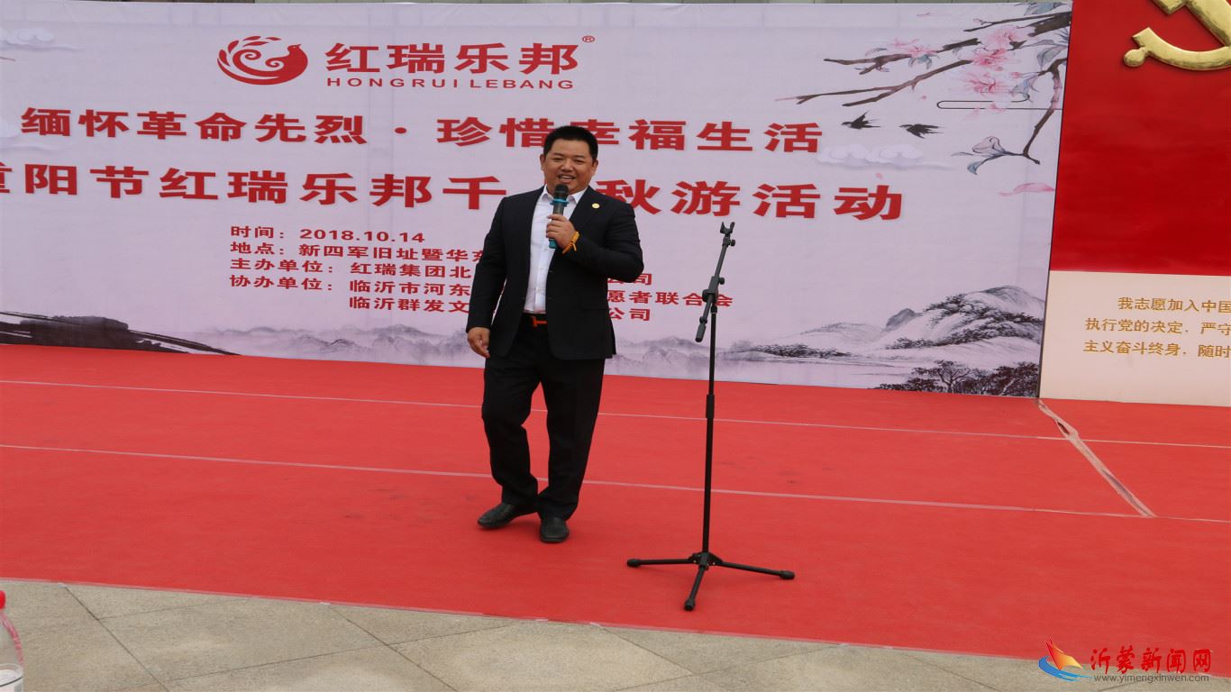 10月14日,“缅怀革命先烈,珍惜幸福生活”,九九重阳节来临之际,红瑞集团北方大区山东公司组织千余名老人秋游活动。当日上午,大家集体来到了位于河东区的新四军旧址暨华东野战军战役纪念馆,观看了战役旧址,瞻仰了革命先烈当年的英雄事迹。随后观看了精彩的演出。原临沂市政协副主席颜廷瑞,临沂市爱心联合会会长李波,红瑞集团北方大区副总经理、山东公司总经理刘建勇,红瑞集团北方大区山东公司市场总监赵恒军,红瑞集团北方大区山东公司临沂片区经理王飞女士,河东区学雷锋志愿者联合会会长 朱孟花 以及雷锋志愿者团队,社会有关领导及媒体人士参加活动。