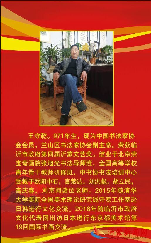 坦然告别旧岁,微笑迎接新年。新的一年,充满新的期待,更需要新的责任和奉献。兰山区书协将加强协会建设,努力把协会办成会员之家,本着尊重传统、学习传统、继承传统、弘扬传统的学习理念,把兰山区的书法事业推向新的高度,达到新境界;为书圣故里、大美临沂增色添彩;参展的各位主席团成员将继续发扬志存高远、锐意进取的精神,团结一致,临池不辍,满怀对艺术的热爱和执着,满怀信心和期待,满怀真诚和激情,带着幸福和希望,拥抱2019!