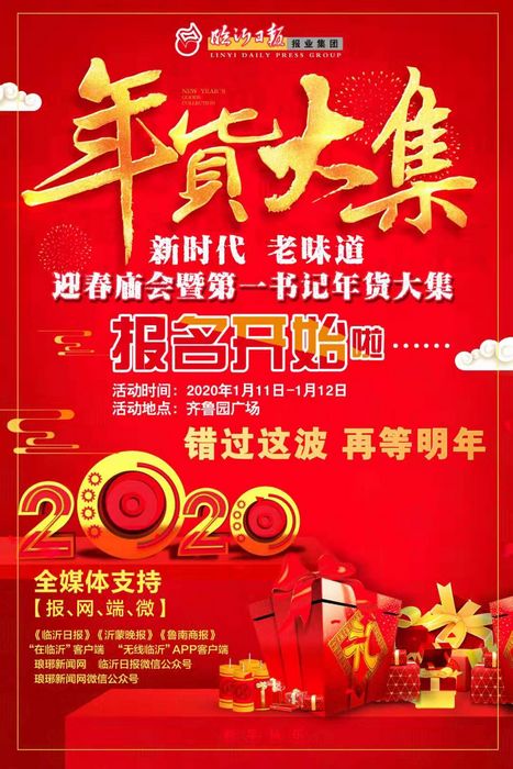 最后,再强调一下本次年货大集的举办时间和地点。时间是1月11日-12日(本周六、周日),地点是北城新区齐鲁园广场2-3楼。可不要错过哦。为方便市民来赶年货大集,专门设立了免费乘车专线,三辆车在老城区按照10路、25路和33路路线跑,过了沂蒙路祊河桥以后中途不停车直达齐鲁园广场。