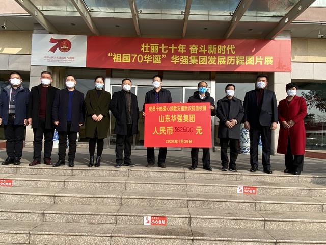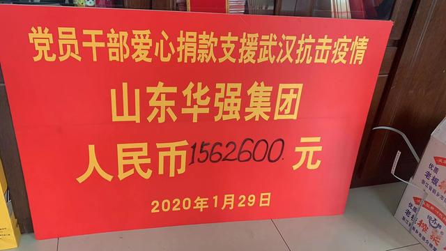 1月29日上午,山东华强集团会议室内一场疫情防控募捐活动举行,短短几十分钟,华强集团宋王庄社区共向武汉疫区捐款1758500元人民币(其中集团1562600元,社区195900元)。在疫情面前,暖流飘荡,山东华强集团用实际行动支援武汉!