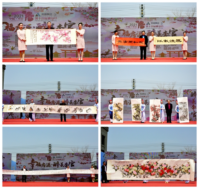 开幕式现场,震撼的航空表演、热闹的非遗市集、撩人的网红打卡地、优雅的汉服旗袍秀、桃花仙子展演和诗朗诵《桃花依旧笑春风》,以及左东旭 、王杰宝、丁元国、韩书田、李玉宝、李西贵、王德圣、张林堂 、李朝国、解万泽、丁兆东、梁玉国等12名知名书画家的作品展演为万亩桃源增光添彩,充分展示了文化的魅力。