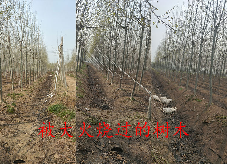 2021年3月27日上午十一时许,靠近苗圃地的仲湾村的泄洪沟渠施工,有一陈姓的人员在施工过程当中为了便于施工,将施工面之内的杂草树叶放火焚烧,将苗圃地内法桐地内树下的落叶点燃,致使苗圃地过火面积达十余亩。所有法桐过火之后,树皮均已大面积受伤,致使这些苗木不能再作为工程苗木使用。加上多年的承包地费用、苗木费用、员工工资福利、管护费用等,经初步估算经济损失30余万元。