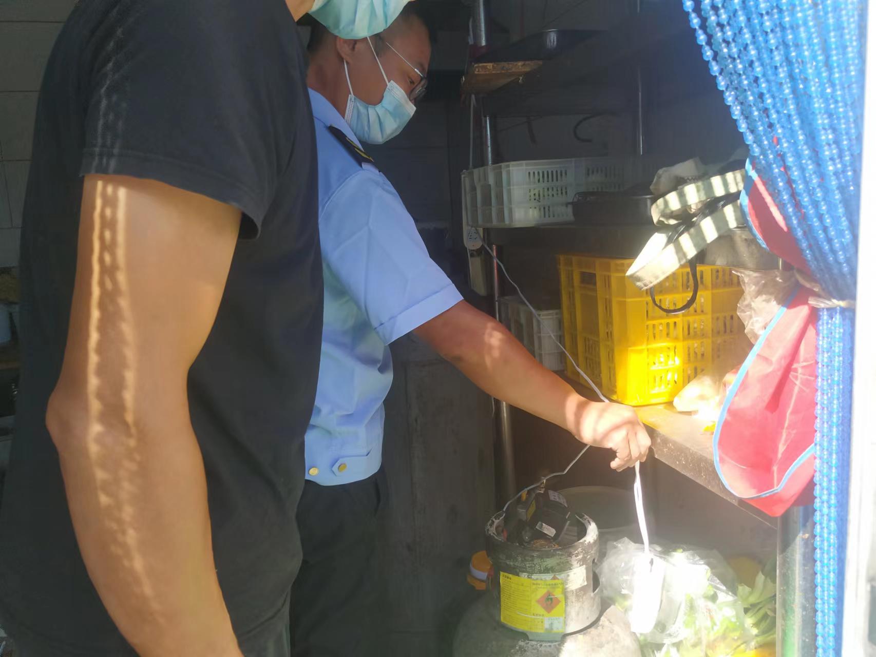在检查中,工作人员重点围绕气瓶是否在检验有效期内、是否为改装翻新气瓶及报废气瓶;液化气软管是否老化,是否有分支现象,液化气与灶具距离是否规范等情况进行了细致的检查。