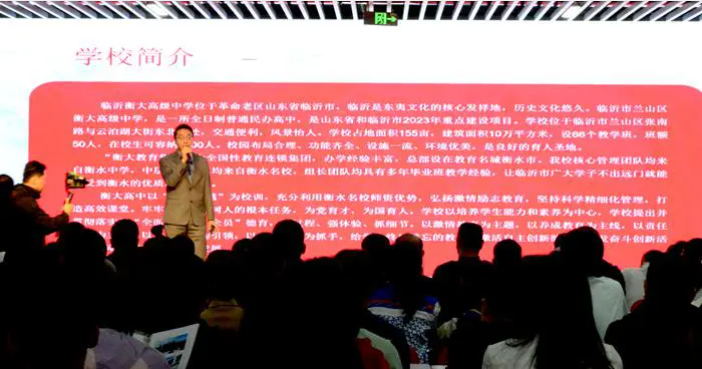 临沂衡大高级中学高三年级主任王凯,介绍了临沂衡大高级中学的教学管理、办学特色,分享了临沂衡大高级中学2023级高一学生的教学经验。
