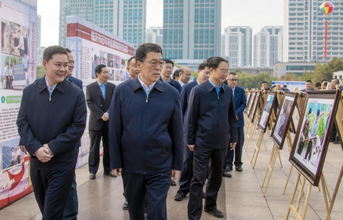启动仪式后,与会领导还参观了脱贫攻坚系列成果展。现场展览共设立行业部门成果展、脱贫攻坚图片展、第一书记村农特产品展三个展区,多角度、多层次展示了临沂市脱贫攻坚工作的进展与成效、亮点与经验。 在行业部门成果展区,聚焦贫困户稳定实现“两不愁三保障”,市农业农村局、市发展与改革委、市水利局、市卫生与健康委等20多个行业部门结合自身实际,以图文并茂的形式展示了近年来临沂市行业扶贫采取的措施、取得的显著成效。