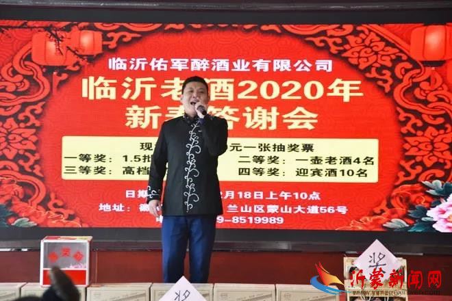 沂蒙新闻网讯(王懿) 2019年12月18日,佑军醉酒业临沂老酒2020年新春客户答谢会在安徽国际酒店隆重举行。佑军醉酒业董事长马立富,总经理赵伟静以及佑军醉酒业各直销处、合作单位、新闻媒体代表等200余人,欢聚一堂,共享市场发展成果,共谋明天发展蓝图。