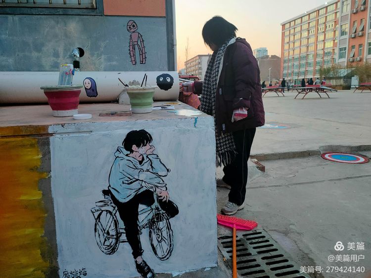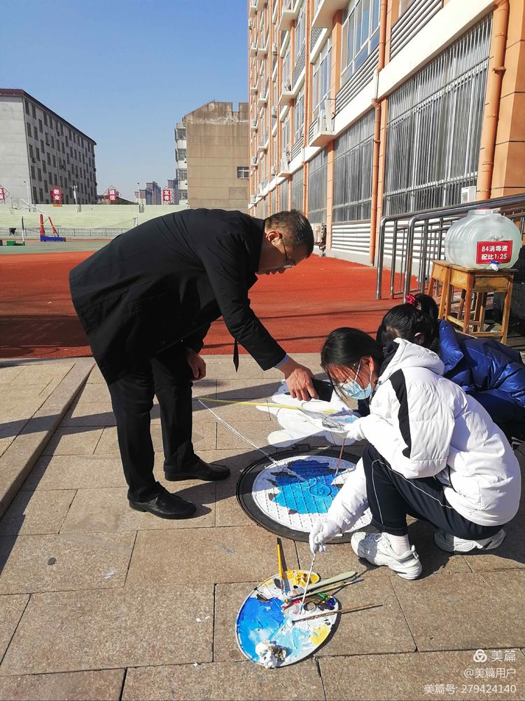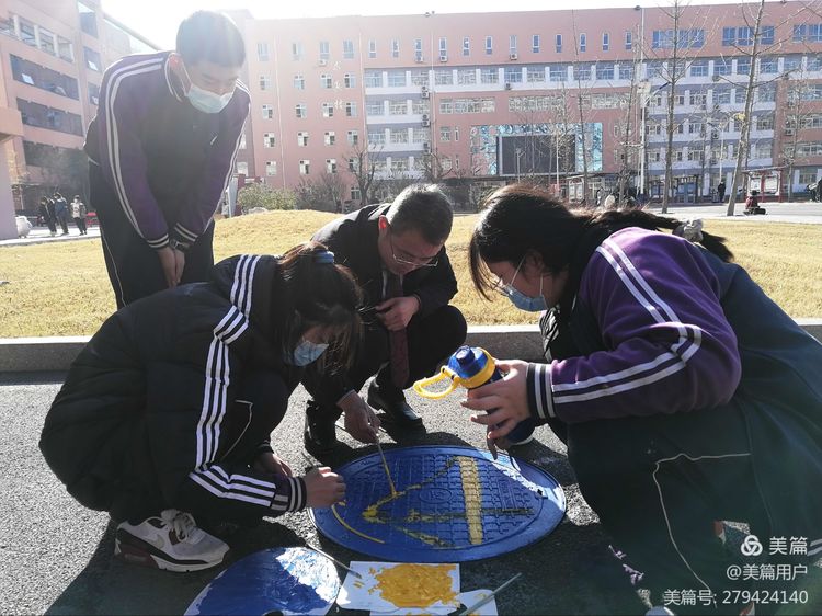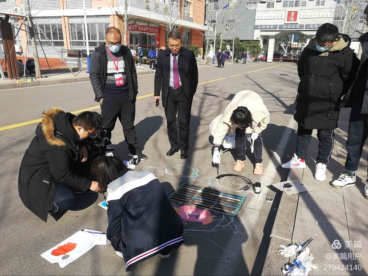 寒风瑟瑟,也挡不住同学们装扮校园的热情。画设计图,清洗井盖,起稿,定形,上色……大家认真、仔细的完成着每一个步骤。