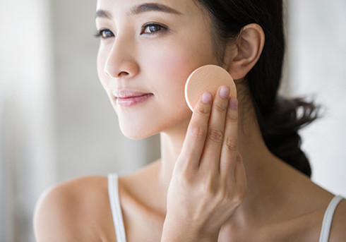 接着就可以用粉饼蘸取少量的蜜粉用于定妆。