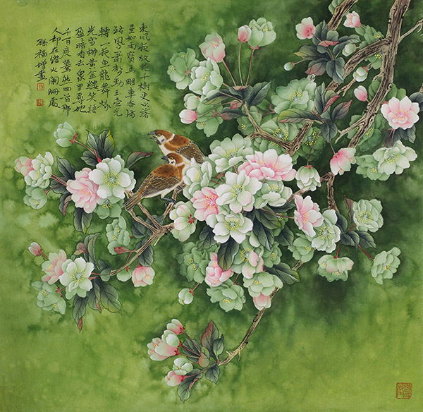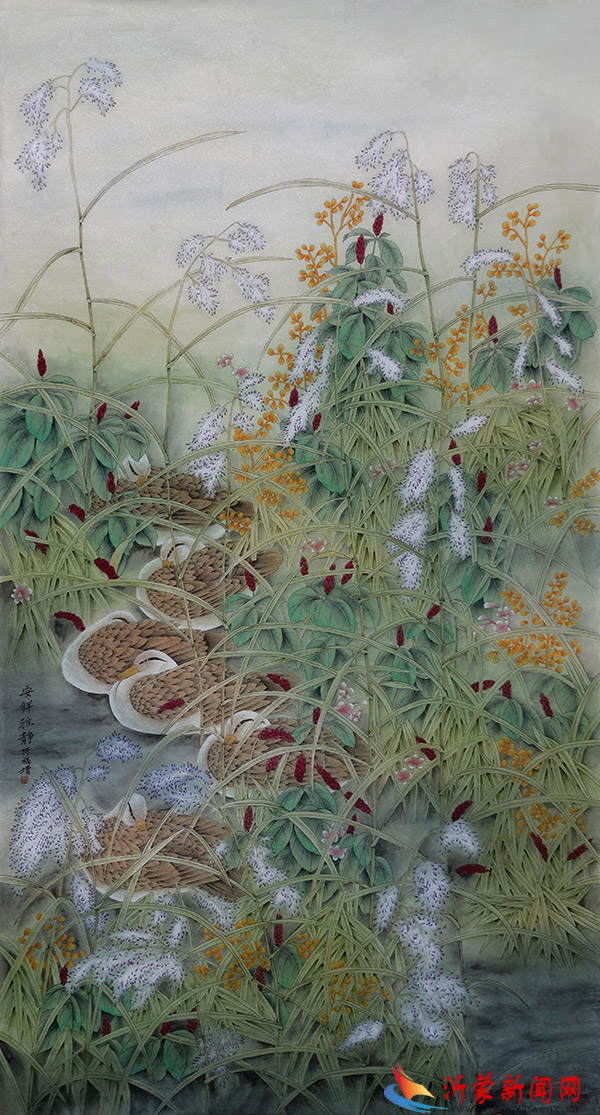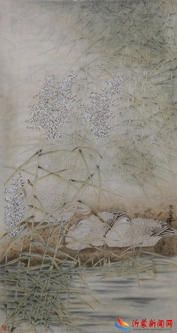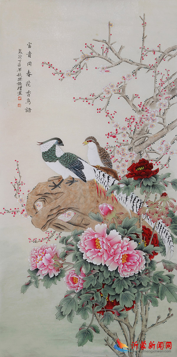 与孙福增相识有年,只知其擅书,却未知福增还是一位优秀的画家,甚乃画之水平尚在书法之上。近一步了解得知福增早年对绘画就有扎实的基本功,八十年代末改行绘设计效果图和专功书法,近两三年,与福增未谋面,少通问;偶然来电获知,近些年于书法较少问津,反是到首都师范大学李翔国画高研班进修国画了。二、三年间,沉潜苦修,不事张扬,有较强的创作能力,创作上成果丰硕,连续有多幅大型版画和国画作品获中国美术家协会,总政宣传部主办的全国和全军美展中获奖,并且几幅人物画创作风格迥异。一幅是描绘塑造了一个年轻士兵在血与火的战斗洗礼中,英勇无畏的钢铁意志与战斗精神,画面雄壮,气势恢宏;人物刻画,典型环境塑造,具有强烈的感染力,显示出写实主义人物画的真实力量;另一幅人物画,则以写实主义为底蕴,又融以装饰性与白描手法,洗尽铅华,雅韵深致。将两位都市丽人,沉静、娴淑,而又不乏现代都市职业女性时尚,朝气蓬勃的健康之美表现的淋漓尽致,显示出高超的绘画水平和不同凡俗的审美格调。